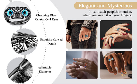 Cueen™ Silver-Plated Lucky 3D Owl Ring (Adjustable Size)